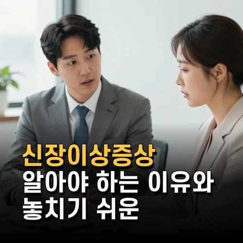 | 신장이상증상 | 초기 증상이 거의 없고 피로, 부종, 소변 변화 등으로 나타나며 조기 발견이 중요함 |